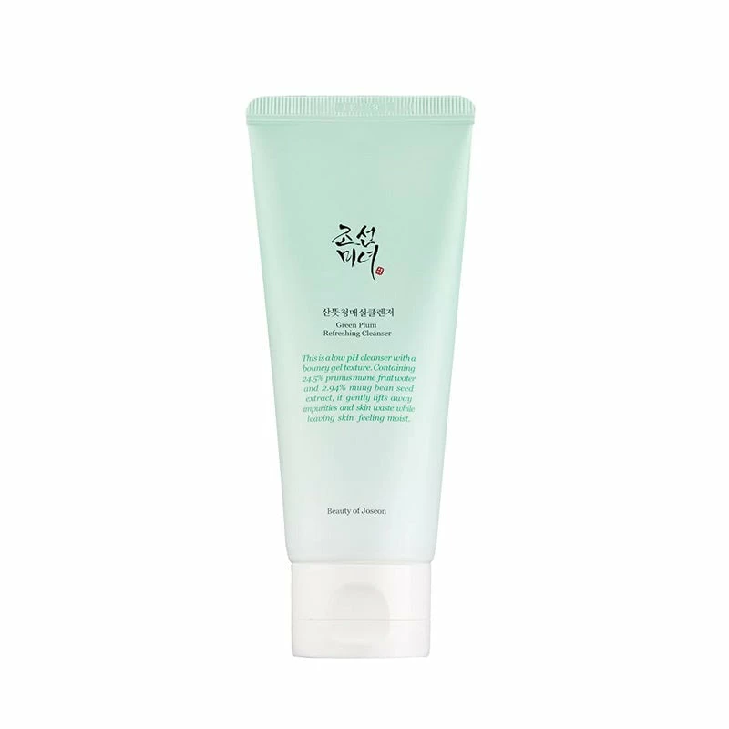 Beauty of Joseon: Green Plum Refreshing Cleanser  is a slightly acidic cleanser that helps to cleanse the face without damaging the natural skin barrier. It does not dry out the skin and provides a moist feeling even after cleansing. Plum water 24% soften old dead skin cells and moisturize the skin. Mung beans are effective for exfoliating, so they were made into a face cleanser by grinding them together with red beans, other beans, and rice bran in the Joseon Dynasty. In addition, the saponin contained in mung bean helps to keep the skin moist for a long time by promoting the creation of moisture.