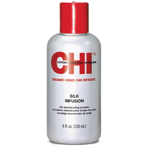 CHI Silk Infusion Silk Reconstructing Complex is a rich leave-in treatment enriched with silk, wheat, and soy proteins that will penetrate and help strengthen the hair, providing incredible softness, manageability and shine without build up.