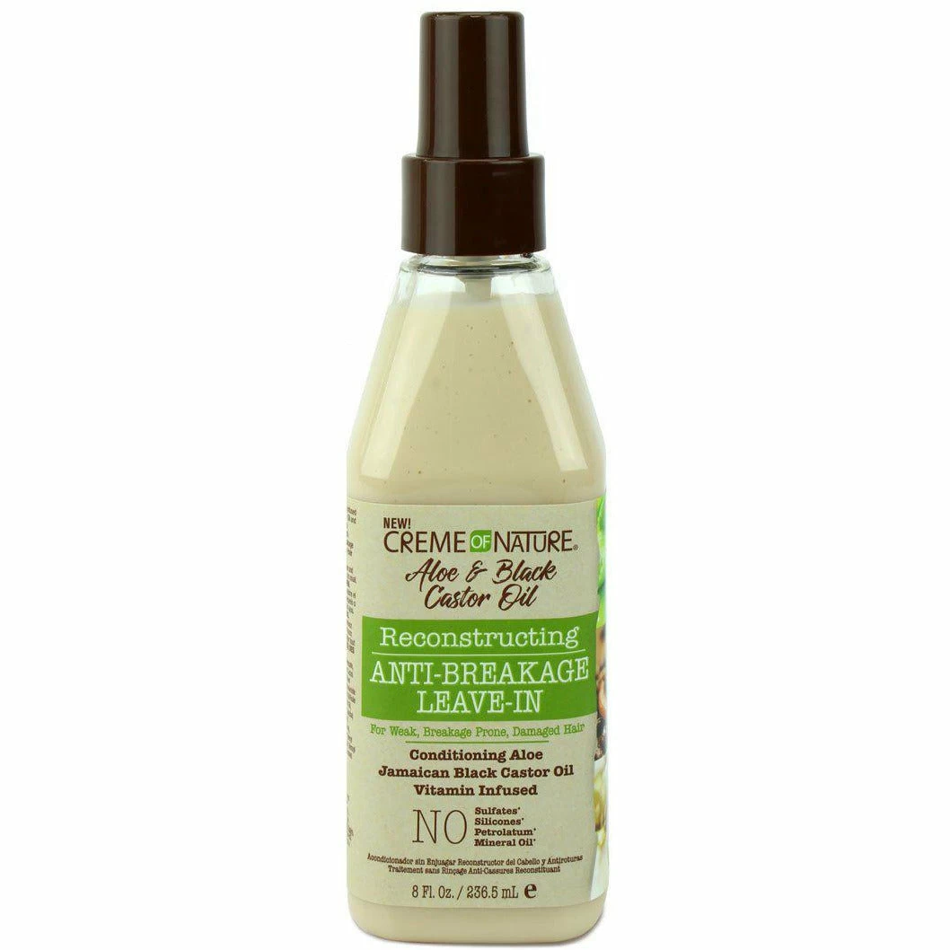Creme of Nature® Aloe & Black Castor Oil Reconstructing Anti-Breakage Leave-In collection is infused with a blend of Aloe Vera gel, Jamaican Black Castor Oil and Vitamins. This collection targets weak, damaged hair to provide a healthy level of strength and noticeable length.