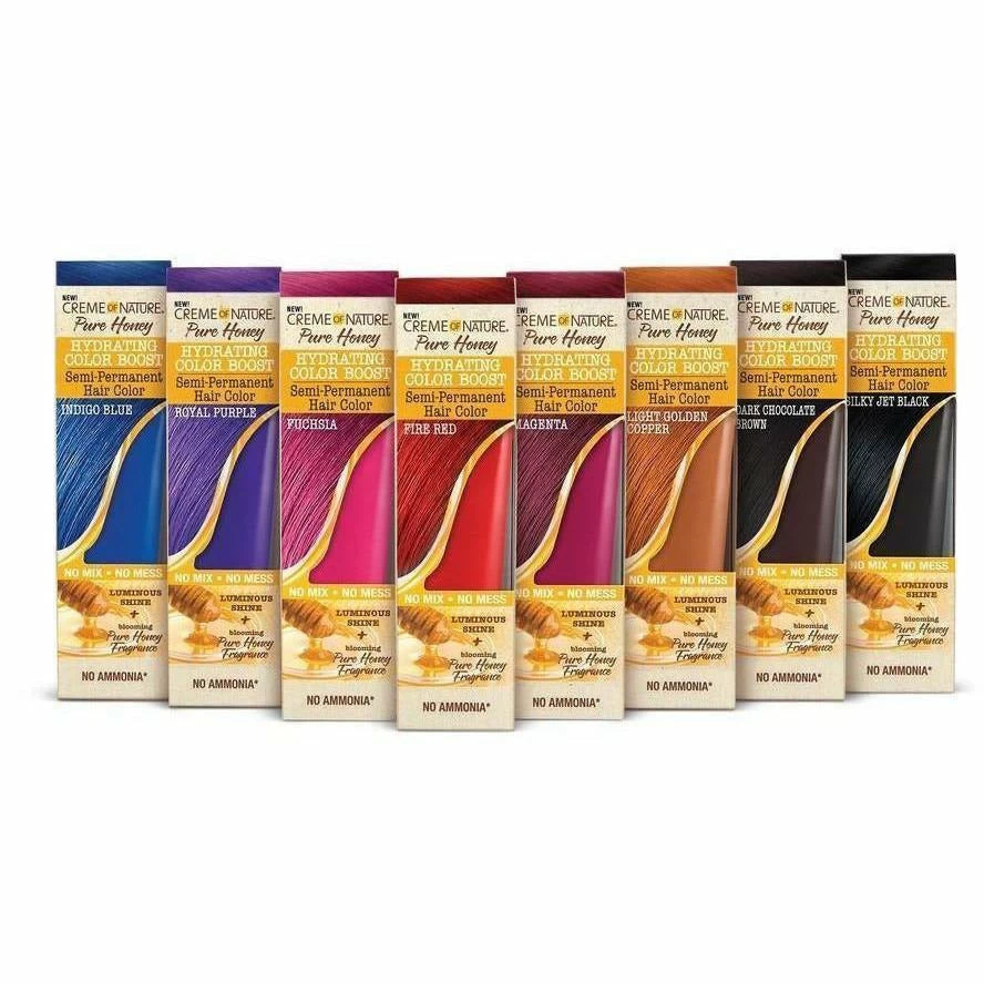 Creme of Nature Pure Honey Hydrating Color Boost gives a luminous shine and a blooming pure honey fragrance.
