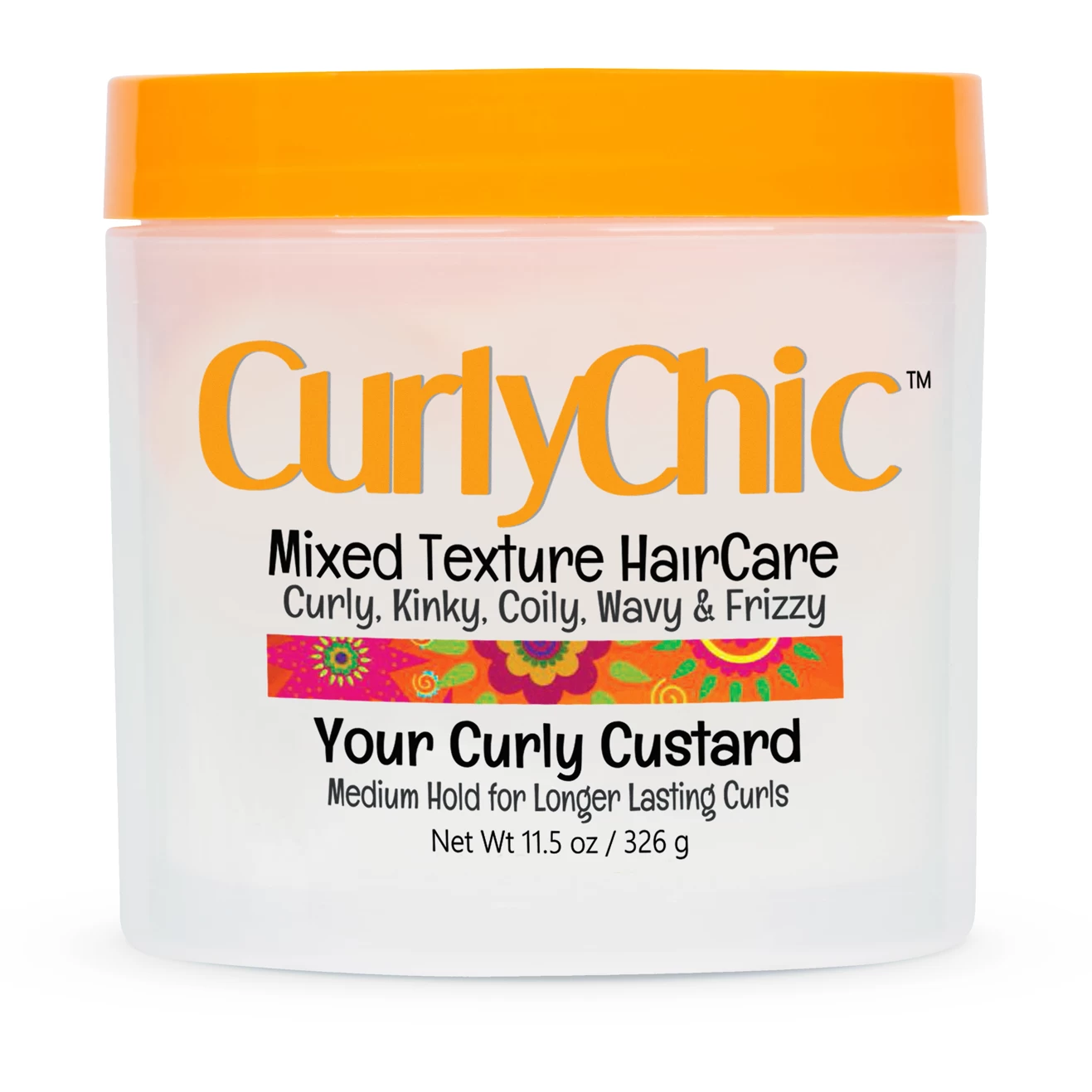 Create shiny, bouncy curls with our medium hold curly custard. Our Curly Custard moisturizes and curls with minimal flaking and shrinkage.