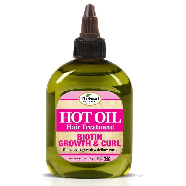 Difeel: Growth & Curl Biotin Premium Hair Oil  is formulated with Biotin and Wavemax, a plant-based active ingredient for proven long-lasting and defined curls.