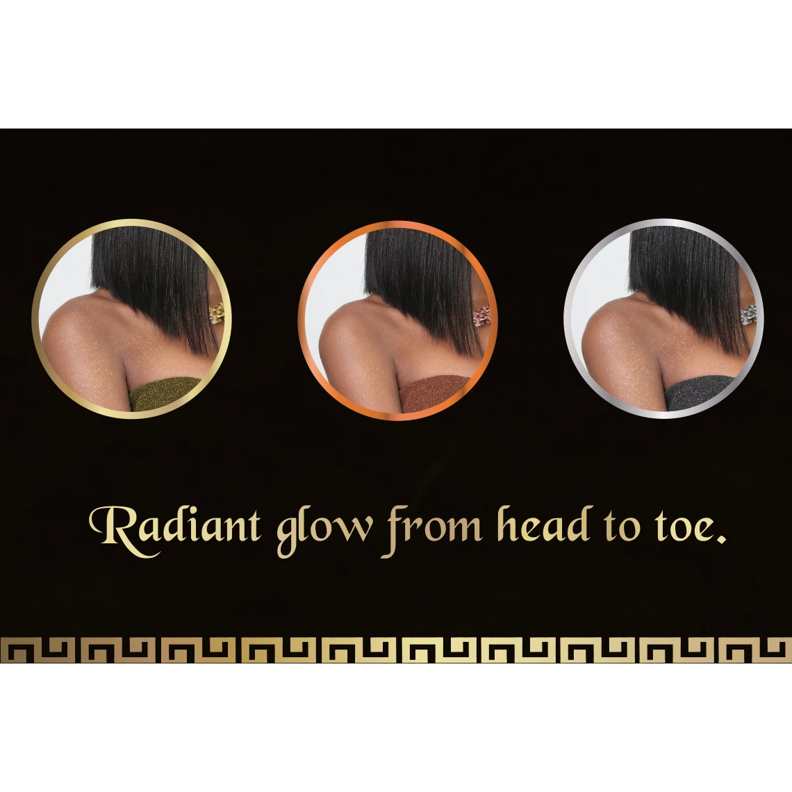 Shake up your glam routine with our Egyptian Diamond Hair & Body Glitter Mist Collection. From Gold, Rose Gold to Platinum Diamond, each formula will make your skin and hair illuminate with sparkles from head to toe. With Egyptian Diamond, You Glow Girl!