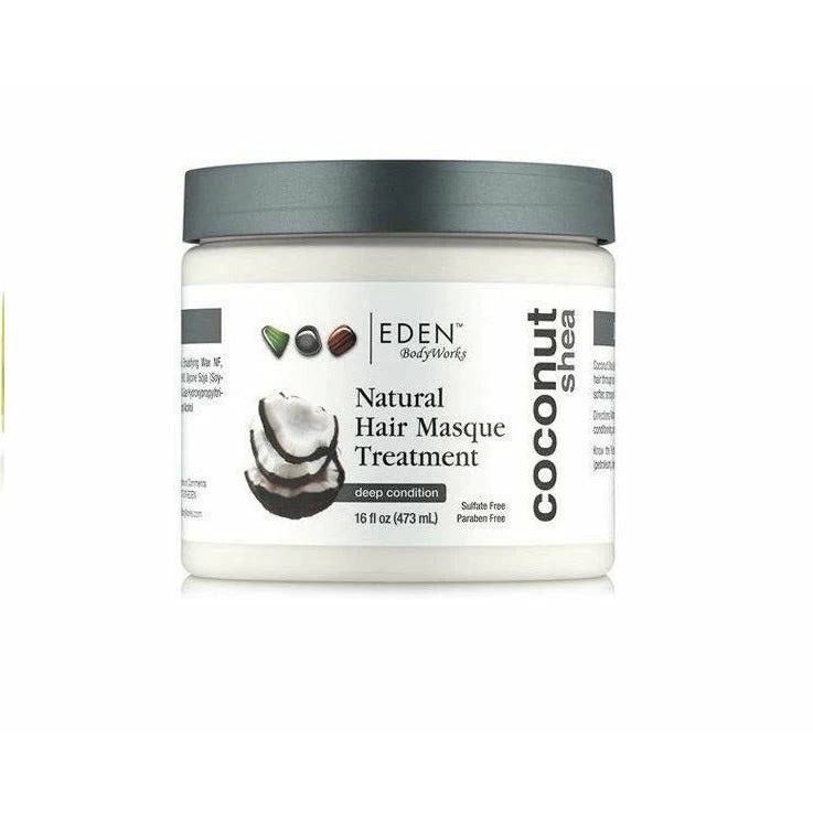 EDEN BodyWorks Coconut Shea Hair Masque is a conditioning treatment that penetrates the hair shaft to transform dry, brittle hair through an intensely moisturizing botanical blend of Coconut Oil and Shea Butter to deliver softer, stronger hair.
