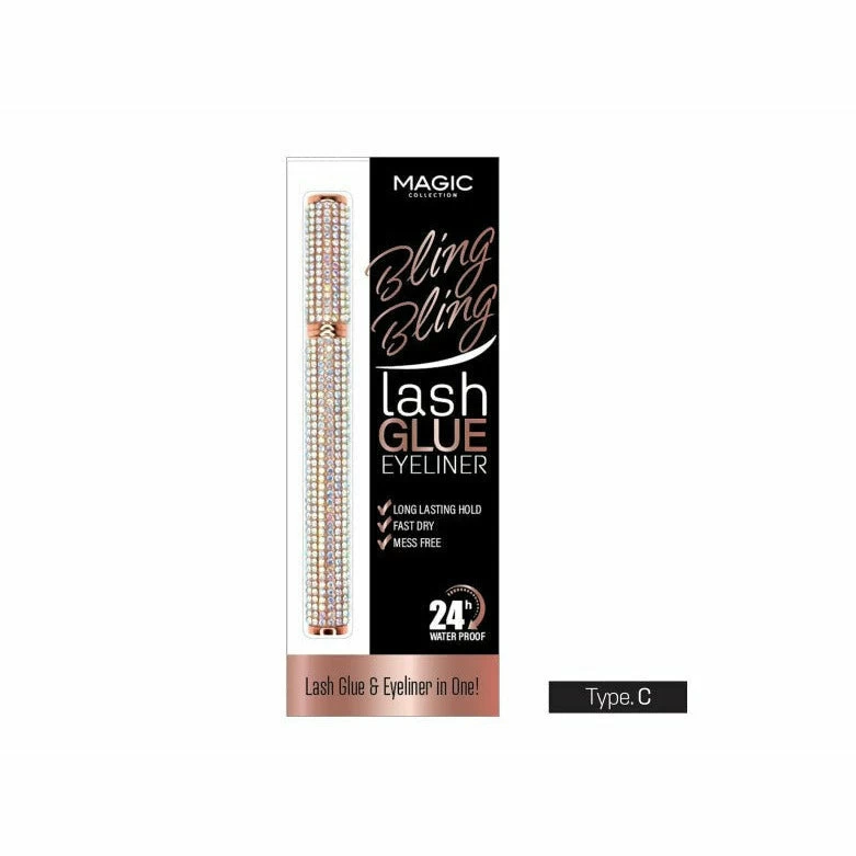 Magic Collection Bling Bling Eyelash Glue Eyeliner is a 2 in 1, stay all day lash adhesive and eyeliner as well. This innovative game changing formula combines the power of extra tacky, latex free lash adhesive with bold pigmented liquid eyeliner in an easy to apply and fast dry, mess-free felt tip pen.