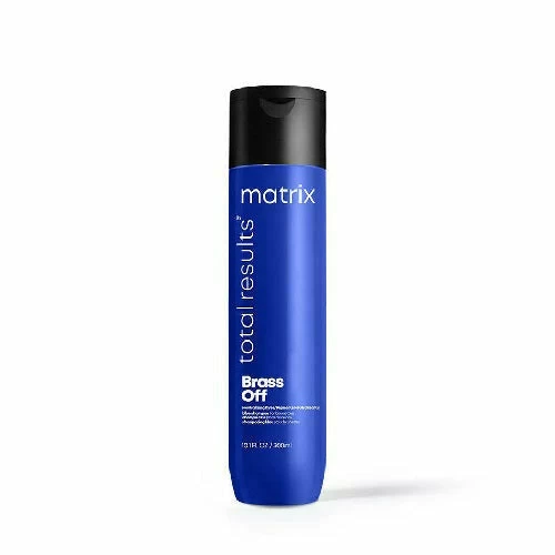 Matrix: Total Restults Brass Off Shampoo If lightening your hair was like throwing a soiree, brass would be the unwelcome, party crasher. To keep a newly-lightened hair color looking its best, reach for Matrix Total Results Brass Off Shampoo. This shampoo deposits blue-violet pigments when you wash your hair, so brassy tones are neutralized, and so you can enjoy your new color, and extend the time between salon visits, even longer.