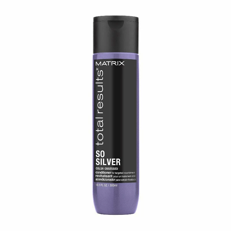 Maintaining blonde and silver hair can often lead to unwanted dull, damaged strands. Matrix Total Results So Silver Conditioner uses targeted nutrition technology to hydrate dry and porous hair. Hair is left feeling shiny and healthy so that blonde and silver tones can stay as vibrant as ever.