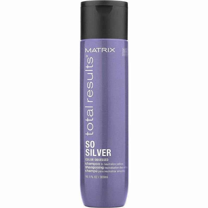 The one that started the purple-neutralization trend! Total Results So Silver is a professional salon clarifying shampoo that cleanses and neutralizes unwanted brassy warmth and eliminates dull, yellow tones. It illuminates highlights on blondes and adds shimmering brightness for color treated and natural hair ranging from grey to white shades.