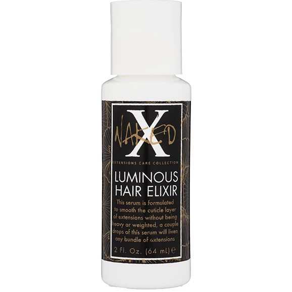 Formulated to smooth the cuticle layer of extensions without leaving them heavy or weighted, a couple drops of this serum will liven any bundle of extensions. When used with the Naked X Lux Smoothing Shampoo & Conditioner, and the Revive Hair & Scalp Spray, the Naked X Luminous Hair Elixir will be the final step in silkening extensions, wigs and any other type of commercial hair.