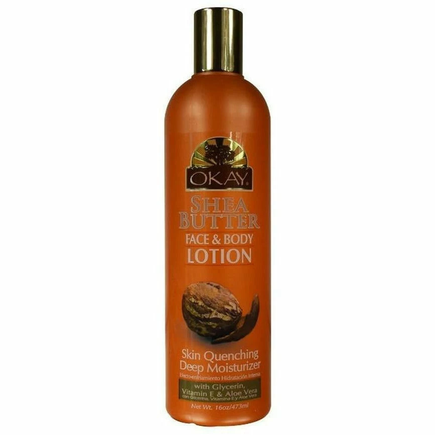 Okay Shea Butter Face & Body Lotion delivers a deep thirst-quenching moisturizing for dry, damaged, and dull skin. This excellent all-over body moisturizer smoothens away rough skin and creates a natural, youthful glow.