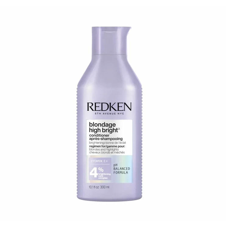 Redken: Blondage High Bright Conditioner is our answer to blondes who lose lightness and brightness in the weeks between salon visits. This conditioner is the final step in the 3 step High Bright regimen, out new blonde haircare system powered by Vitamin C and Redken’s Brightening Care Complex. This system washes away buildup and impurities in hair, brightening dulled, darkened or mattified blonde hair caused by dulling agents and pollution. Get an instantly brighter blonde in one use when you use the entire High Bright system.
