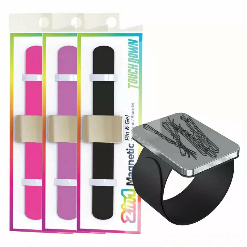 Touchdown’s 2 in 1 Pin & Gel Magnetic Wristband is a magnetic silicone wristband used to hold product while braiding but also serves as a magnetic tool to hold hair pins, hair clips, small screws, nails, and more making this the perfect assistant/tool for hairstylist, braiders, sewers, quilters, crafters, and others. The magnetic wristband allows for quick & easy access when styling, which lets you work more efficiently.