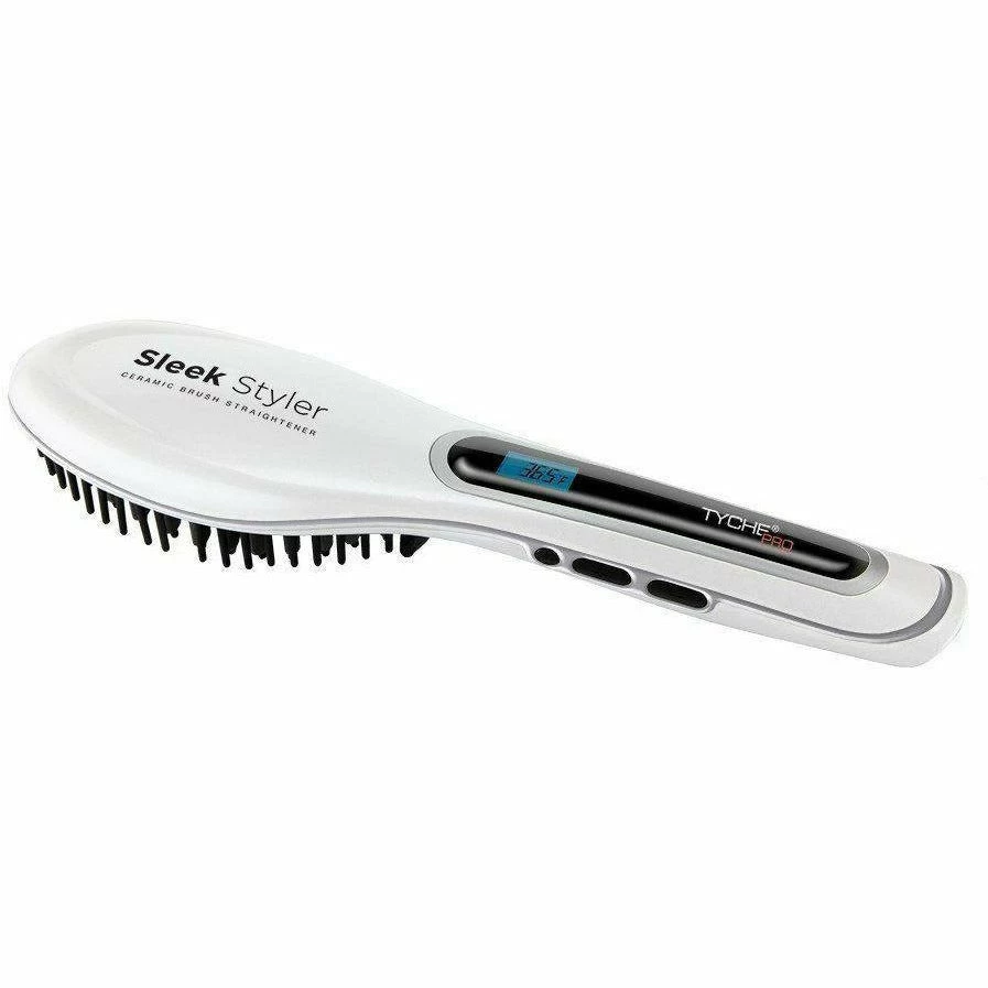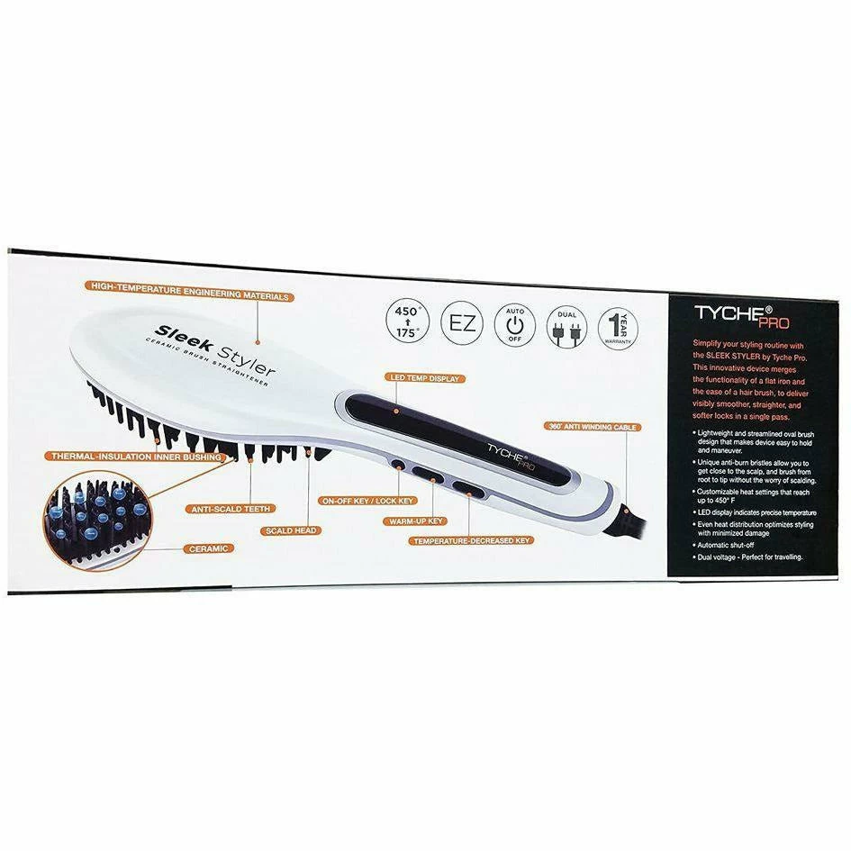 Simplify your styling routine with the Sleek Styler by Tyche Pro. This innovative device merges the functionality of a flat iron and the ease of a hair brush, to deliver visibly smoother, straighter, and softer locks in a single pass.